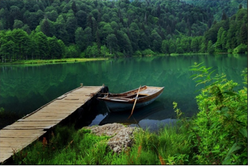 Üçüncü gün daha dinç ve dinlenmiş bir şekilde güne merhaba dedik. Eşim ile birlikte terasından seyrine doyamadığımız manzara eşliğinde yaylanın havasını içimize teneffüs ederken, ağaçların yaprakları arasından süzülen güneş ışıkları ile karşımızdaki ormandan ulaşan kuş sesleri bize adeta günaydın diyorlardı. Kahvaltıdan sonra turumuza, Ayder Yaylasından Artvin’e doğru yol alarak başladık. Artvin ilinin Borçka ilçesindeki muhteşem ekosisteme sahip Karagöl’e geldik. Gölün manzarası orman içinde adeta bir yağlıboya tablo gibiydi.