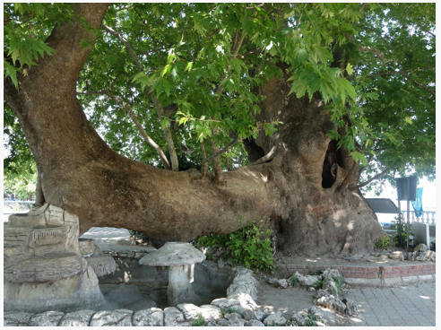 Köye girer girmez, asırlık Ağlayan Çınar Ağacı bizi karşıladı. Dev gövdesi önünde tüm ziyaretçiler gibi bizler de fotoğraf çektirdik. Uluabat Gölü kahverengi suları ile deniz gibi gözükmese de harika bir manzara sergiliyordu. Sazlar ve ağaçlar arasındaki gölü fotoğraflamak için deklanşöre ardı ardına basıyorduk. Gölde tekne turları yapmak mümkün. Anakaradan köye bağlanan ince yoldan geçip yarımada üstündeki Gölyazı Köyüne, köy meydanından giriş yaptık. Göle bakan çay bahçeleri, meydandaki banklar ve masalarda oturan köy halkı ve ziyaretçiler çok keyifli bir tablo sergiliyordu. Ulubat Gölünün sahilini izleyerek köyü gezmeye devam ettik.